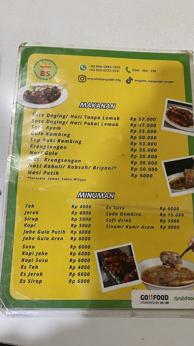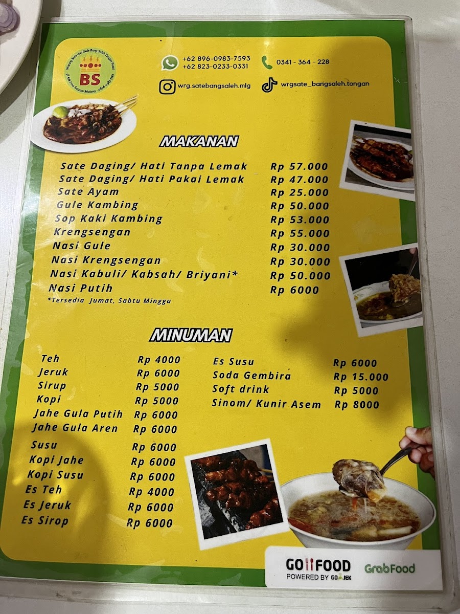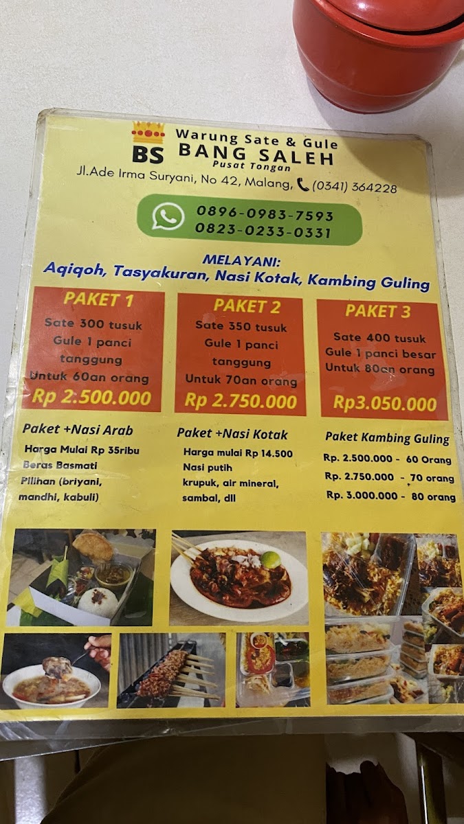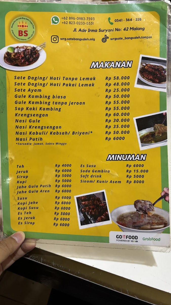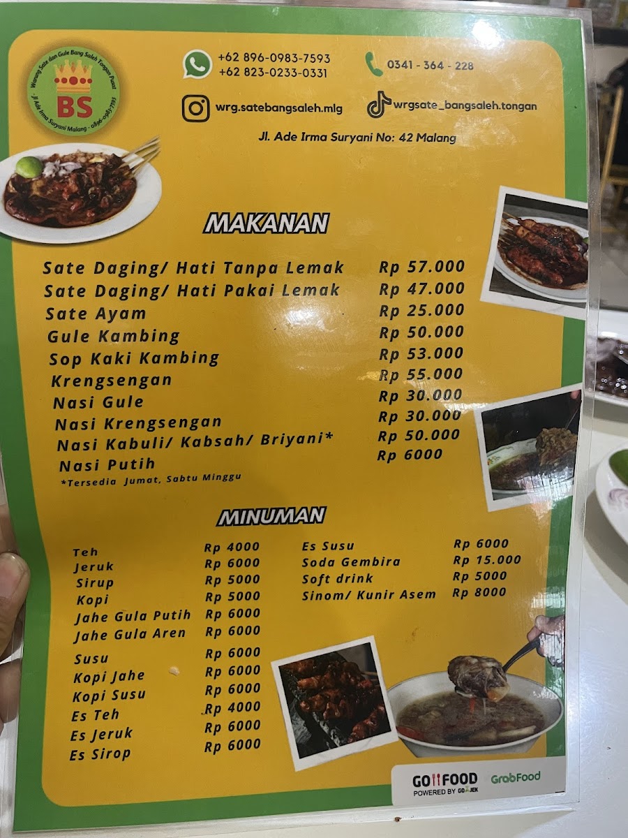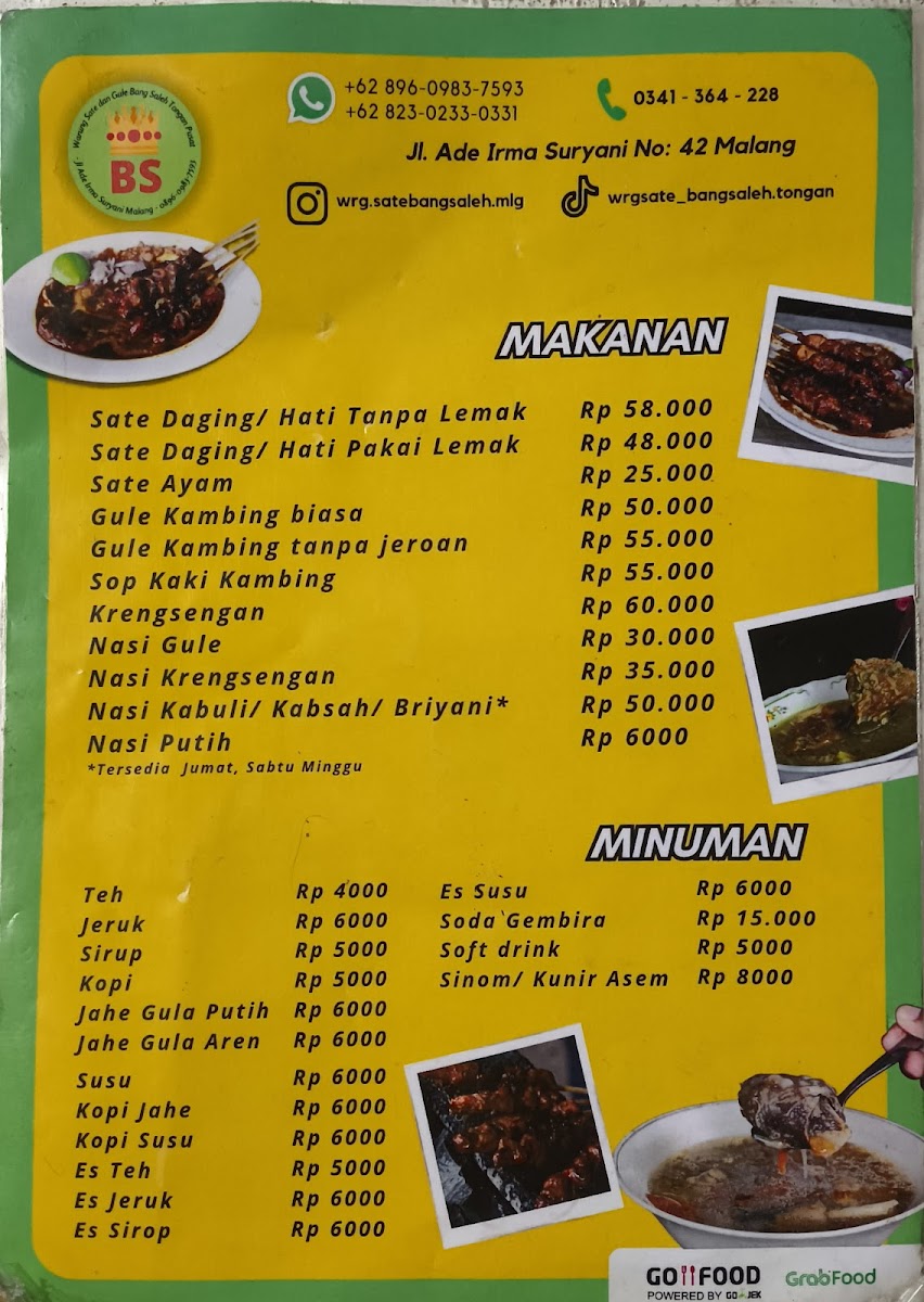 Welcome to Warung Sate & Gule Kambing Bang Saleh, a beloved spot nestled in the heart of Malang. This charming eatery specializes in exquisite goat and chicken satays, offering patrons the choice of tender cuts with or without mutton fat. Reviews rave about the succulent lamb skewers that are grilled to perfection and paired with a rich, savory peanut sauce.